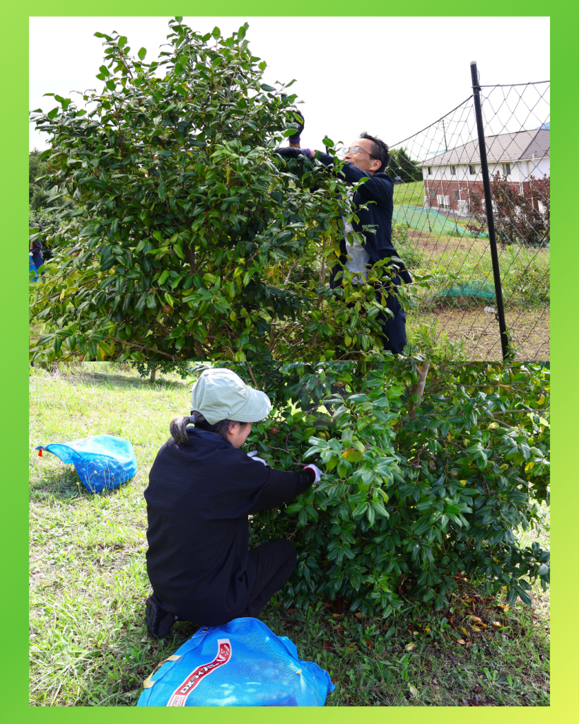 先日、9月14日(日)は、電力パートナーである 有限会社ネパリ・バザーロ さんにお声がけいただき、椿の実の収穫作業に参加させていただきました!🙌